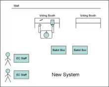 On 3 April 2006 the People's Alliance for Democracy (PAD) petitioned the Administrative Court to suspend the results of the election and accused the Election Commission of violating voter privacy. The EC repositioned voting booths so that voters' backs were to the public, whereas in previous elections, voters faced the public, with a board one-half meter tall at the front of the booth separating the voter from the public. The EC claimed the new arrangement was designed to prevent various forms of poll fraud including the use of cameras by voters to take photographs of their ballots. After the 2005 election, cameras and cameraphones had been banned from voting stations due to fears that canvassers would demand ballot photographs in return for money.[1][2][3] However, the PAD claimed that this allowed onlookers to peek over voters' shoulders and see who they voted for.[4][5]