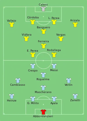 - ↑ Hugo Rodallega played as a goalkeeper after Róbinson Zapata was sent off.