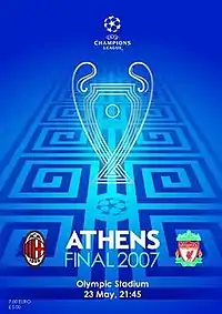 The 2007 UEFA Champions League final was the final match of the 2006–07 UEFA Champions League, Europe's primary club football competition. The showpiece event was contested between Liverpool of England and Milan of Italy at the Olympic Stadium in Athens, Greece, on 23 May 2007. Liverpool, who had won the competition five times, were appearing in their seventh final. Milan, who had won the competition six times, were appearing in their eleventh final.