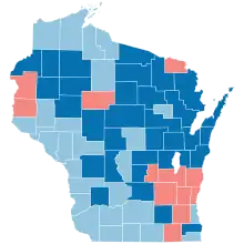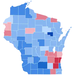 Obama won Wisconsin by a comfortable 13.91% margin of victory. Obama carried the heavily Democratic cities of Milwaukee and Madison by large margins, winning above two-thirds of the vote, along with some traditionally Republican cities like Green Bay and Appleton.[22] In Dane County, he won almost 73% of the vote, and carried 67.3% in Milwaukee County. This was consistent with Obama's pattern of strong performances in the states bordering Illinois. Obama's best performance, at 86.81%, was in the small county of Menominee, which is 87% Native American.[23] The state's Republican base essentially melted; John McCain only carried 13 of the state's 72 counties, a devastating defeat. McCain did best in the Milwaukee suburbs like Waukesha and Ozaukee counties, with his best performance in Washington County where he received 64.14% of the vote. He only won five counties in the Northern part of the state, all of which by rather narrow margins. Wisconsin would not vote for a Republican candidate for president until it voted for Donald Trump in 2016, though it would flip back to the Democratic column in 2020 with Joe Biden back on the ballot.