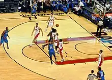 The Raptors opened their season with a 101–91 home win over LeBron James' Cleveland Cavaliers.[7] Bosh and Andrea Bargnani recorded impressive numbers—with Bosh leading the league in rebounds and free throw attempts, and also as one of the top scorers—but the Raptors were slow off the blocks, going 7–8 in their first 15 games. In that period, although the Raptors was fourth in the league in number of points scored per game, they were second last in the league in number of points allowed per game as well. Newcomer Wright criticised the team for being unfocused in pre-game preparations, and appealed to team captain Bosh to change that.[8] The Raptors persisted in being one of the worst defensive teams in the league, and their descent culminated in a 146–115 drubbing by the Atlanta Hawks—the second worst defeat in franchise history—bringing their record to 7–13.[9] They were soon ranked last in most points allowed per 100 possessions, earning a defensive rating that was 10.8% worse than the second-last team, which was the largest disparity in NBA history.[10] The team held a meeting to clear up communication issues among teammates, and this was followed by three consecutive wins.[11]