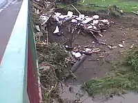 Other rivers temporarily rose over their banks after strong local rainfall. In Bohemian Switzerland, the Kamenice flooded parts of Janská on the evening of 1 July.[58] On 6 July sudden thunderstorms hit Ústí nad Labem Region, where a state of emergency had to be called in some places. West and South Bohemia were also severely threatened in places like Tábor. The authorities feared a burst of dams of artificial lakes and considered evacuating the affected villages.[59]