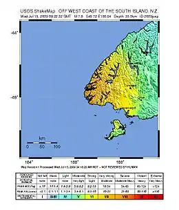 - 1 2 "Magnitude 7.8 – OFF WEST COAST OF THE SOUTH ISLAND, N.Z." USGS. 15 July 2009. Archived from the original on 12 August 2009. Retrieved 15 July 2009.