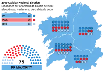 - 1 2 "Parliament of Galicia election results, 1 March 2009" (PDF). www.juntaelectoralcentral.es (in Spanish). Central Electoral Commission. 27 March 2009. Retrieved 25 September 2017.