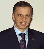 There were twelve candidates of which three ran as independents.[9] The candidates of the major parties were: the then incumbent Traian Băsescu (independent, but supported by Democratic Liberal Party (PDL) and the official fraction of Christian Democratic National Peasants' Party (PNȚCD), led by Marian Miluț), Mircea Geoană (Social Democratic Party or PSD for short), Crin Antonescu (National Liberal Party (PNL) and the contender faction of PNȚCD, led by Radu Sîrbu), Hunor Kelemen (Democratic Alliance of Hungarians in Romania or UDMR/RMDSZ for short)[10] and Corneliu Vadim Tudor (Greater Romania Party or PRM for short).[11][12] Mayor of Bucharest Sorin Oprescu (formerly PSD member) announced his candidacy as an independent candidate on 5 October 2009;[13] Băsescu had also been mayor of Bucharest before becoming president during the early 2000s.[14]