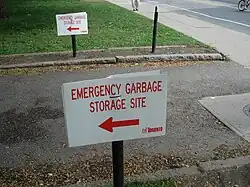 The cessation of garbage collection was one of the more noticeable effects of the labour disruption. Four days into the strike the city announced 19 temporary garbage drop off locations for residential waste. This decision proved controversial in the neighbourhoods containing the sites as residents expressed concerns about pesticide and rodenticide spraying, as well as odour and leaching caused by the piles of garbage.[5] Junk removal entrepreneurs took the opportunity to increase their customer base, specifically because plenty of residents were left without options to deal with their garbage.[6]