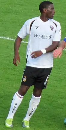 Before the start of the season there was speculation that manager Micky Adams would be approached by his former employers at Championship side Leicester City, having impressed in his position at Port Vale.[2] Adams continued to make his mark at Vale though, releasing nine players, and signing Sean Rigg,[3] Stuart Tomlinson,[4] Justin Richards,[5][6] Ritchie Sutton and Gary Roberts.[7] Lewis Haldane was rushed into hospital after being bitten by an insect during a training session,[8] forcing him to miss the first half of the season.[9] Adams drafted in Reading winger Abdulai Bell-Baggie as a loan replacement for Haldane,[10] and after an initial one-month period then replaced Bell-Baggie with Milton Keynes Dons loanee Jemal Johnson.[11]