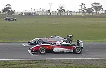 The No 3 Dallara F307 of Zhang Shan Qi and the No 8 Dallara F304 of Josh Burdon at the Mallala Motor Sport Park round of the 2010 Australian Drivers' Championship