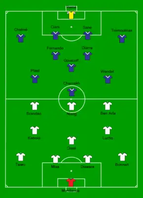 Bordeaux was without vice-captain and centre-back Marc Planus due to a knee injury.[6] The club was also without France under-21 international Grégory Sertic, who will miss a month after breaking a toe on his right foot in the club's match against Lille held the previous weekend, as well as midfielder Abdou Traoré, who is out with a hamstring injury.[7][8]