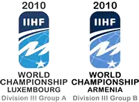 The 2010 IIHF World Championship Division III was a pair of international ice hockey tournaments organized by the International Ice Hockey Federation. The tournaments were contested between 14 and 18 April 2010. For the first time, the IIHF allowed eight teams, rather than six, to compete in Division III, which was handled by separating the teams into two groups. Group A was played in Kockelscheuer, Luxembourg,[1] while Group B's games took place in Yerevan, Armenia.[2] The process reverted to the single group of six teams the following year.