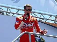 During qualifying, forty-six cars were entered, but only forty-three were able to race because of NASCAR's qualifying procedure.[17] Kahne clinched his seventeenth career pole position, with a time of 1:16.30.[18] He was joined on the front row of the grid by Johnson.[18] Kurt Busch qualified third, Harvick took fourth, and Jeff Gordon started fifth, after being quickest earlier in the session.[18] The three drivers that did not qualify were Brian Simo, Brandon Ash, and Michael Waltrip.[18]