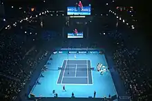 The 2011 ATP World Tour Finals took place from 20 to 27 November at the O2 Arena in London, United Kingdom.[6] It was the 42nd edition of the tournament (37th for doubles). The tournament was run by the Association of Tennis Professionals (ATP) and was part of the 2011 ATP World Tour. The event took place on indoor hard courts. It served as the season-ending championships for players on the ATP Tour. The eight players who qualified for the event were split into two groups of four. During this stage, players competed in a round-robin format (meaning players play against all the other players in their group). The two players with the best results in each group progressed to the semifinals, where the winners of a group faced the runners-up of the other group. This stage, however, was a knock-out stage. The doubles competition used the same format.[1][7]