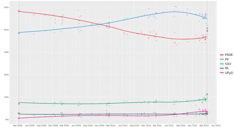 - ↑ "El PP saca siete puntos al PSOE y consolida sus opciones de gobernar". ABC (in Spanish). 28 February 2011.