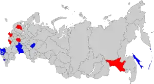 The ballots in governors’ elections in the Amur, Belgorod and Ryazan regions had four names to choose from. The ballot in the Novgorod region contained three names. In total, 17 candidates from six political parties competed for five governor seats. The parties represented the State Duma's "big four" United Russia, the Communists, the Liberal-Democratic Party and A Just Russia, as well as Right Cause and Patriots of Russia. Candidates from LDPR competed in four regions, those from the Communist Party of the Russian Federation in three, Right Course and Patriots of Russia were represented in two regions, and A Just Russia in one.[1]