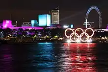 Olympic Rings by the River Thames on 6 August - 27 July–12 August – London hosts the 2012 Summer Olympics, beginning with an opening ceremony, and making the UK capital the first city to host the Games for a third time. The closing ceremony is on 12 August.