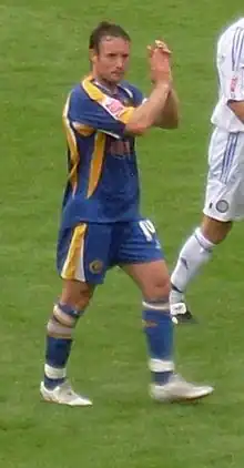 At the start of July Weir added to his backroom staff by appointing former Everton team mate Lee Carsley to the position of "Assistant Manager – Technical".[28] United opened their tour of Scotland with a 1–0 win over Greenock Morton thanks to a goal from Chris Porter,[29] before a second Porter goal in as many games helped United to a 1–1 draw with Cowdenbeath a few days later.[30] Despite the club having only recently extended his contract, Jordan Chapell was joined Torquay United on a free transfer on 9 July, agreeing a 2-year deal with the south coast club.[31] United then completed their Scotland tour with a 2–1 victory over Raith Rovers.[32] Returning south of the border, United next faced and away trip to Bury where they had to come from behind to register a 3–1 victory at Gigg Lane.[33] The following week Richard Cresswell was allowed to leave on a free transfer, signing a one-year deal with York City,[34] followed by United signing Falkirk striker Lyle Taylor for an undisclosed fee.[35] Taylor made his first appearance for United in a friendly at Mansfield Town the following weekend, helping the Blades to a 1–0 victory thanks to a goal from Fabien Brandy.[36] On 22 July United continued to revamp their squad by signing Conor Coady on a six-month loan from Liverpool,[37] before a strong United side headed to Alfreton Town the same evening, registering a 1–0 victory.[38] United completed their pre-season fixture list with two games in quick succession, holding Greek Superleague side Atromitos to a 2–2 draw at Bramall Lane on 26 July,[39] and then registering a 1–1 draw with York City less than 24 hours later.[40] With the pre-season schedule completed David Weir confirmed that Michael Doyle would remain as Captain for the upcoming season.[41]