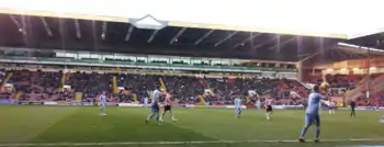 With the winter transfer window due to open, United opted to allow striker Lyle Taylor to join Scottish Premiership side Partick Thistle for the remainder of the season.[103] Taylor was quickly followed by fellow striker Marlon King whose short-term contract was terminated at the end of the year.[104] Youngster Jahmal Smith joined Harrogate Town on a youth loan.[105] Having picked up an injury during the game against Oldham, Aidan White cut short his loan spell to return to Leeds for treatment.[106] United's unbeaten run did not last into the new year, as despite leading 1–0 at half time, they were beaten 2–1 away at Walsall.[107] As January began Aaron Barry returned from a successful loan spell at Dumbarton having played over 20 times for the Sons,[108] before United knocked Premiership side Aston Villa out of the FA Cup following a 2–1 third round at Villa Park.[109] The following week saw a flurry of arrivals and departures as Elliott Whitehouse returned from his loan spell at York City,[110] whilst Joe Ironside returned from Halifax Town, Callum McFadzean returned from Chesterfield and youngster Jahmal Smith joined Harrogate Town on a months loan.[111] Conor Coady then extended his loan with United until the end of February,[112] and Darryl Westlake extended his loan with Mansfield Town until the end of the season.[113] The following day Malachy Brannigan was unveiled as the club's new managing director, reuniting with Nigel Clough, with whom he had worked at Derby County.[114] The week concluded with United signing Billy Paynter on loan for the rest of the season from South Yorkshire rivals Doncaster Rovers,[115] whilst Marcus Williams left permanently for Scunthorpe United on a free transfer,[116] and Sean McGinty joined Northampton Town on a months loan.[117] For the second league fixture in a row United let a lead slip to lose 2–1 at Notts County,[118] and then as Nigel Clough continued to revamp the squad, Febian Brandy was allowed to rejoin Walsall on loan for the remainder of the season, only six months after leaving the West Midlands club,[119] and Florent Cuvelier joined Port Vale for a similar period.[120] In their next match, United drew 2–2 at home with Yorkshire rivals Bradford City despite having held a two-goal lead at half time.[121] 24 January saw United make a number of signings, bringing in John Brayford on loan for the remainder of the season from Cardiff City, signing Stefan Scougall from Livingston for an undisclosed fee,[94] and agreeing a loan-swap deal with Blackpool that saw Bob Harris sign for a month with United, with Tony McMahon moving in the opposite direction.[122] In the fifth round of the FA Cup United held Premier League Fulham to a 1–1 draw at Bramall Lane, despite being reduced to ten men for most of the second half following Michael Doyle's red card.[123] On 30 January, McMahon agreed a permanent switch to Blackpool, after the west-coast club decided to take up the remainder of his contract.[124] The following day, in the final hours of the transfer window, United agreed a similar deal with Bob Harris, taking over the remainder of his contract from his former club.[102]