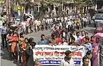 In Noakhali District several Hindu homes and temples came under the attack of the Islamists.[6][7][8][9][10] On the morning of 28 February, the activists of Jamaat-e-Islami and Islami Chhatra Shibir began to gather near Rajganj Bazar in Begumganj Upazila.[11][12] At around 2 pm, immediately after the verdict, the activists armed with sticks, started a procession in protest against the verdict. The procession vandalised the Kali temple at Rajganj Bazar and the temple near Bainnabari. Then they attacked the Hindus in nearby Tongipar and Aladinagar villages. They vandalised eight Hindu households and looted all the valuables including money and jewellery.[11] The temple of Bhuiyan house in Tongipar village was vandalised. Six people were injured in the attacks.[12] The violence continued in phases till the evening. Around 6–30 p.m. Rapid Action Battalion was deployed to bring the situation under control.[11] On 23 March, Islamic extremists vandalised and looted a temple at Companiganj Upazila On 26 March, miscreants set fire in a Hindu house at Zirtali union belonging to Begamganj Upazila.[13]
