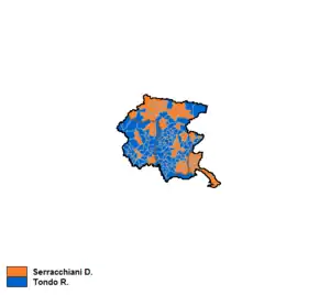Debora Serracchiani, Socialist MEP and regional leader of the Democratic Party (PD), narrowly defeated incumbent Renzo Tondo of The People of Freedom (PdL) 39.4% to 39.0%; Saverio Galluccio of the Five Star Movement (M5S) came third with 19.2% of the vote.[1] Serracchiani was the second woman to hold the office of President of Friuli-Venezia Giulia, after Alessandra Guerra of the Northern League (LN) in 1994–1995.[2] The turnout was a record low as a mere 50.5% of eligible voters turned out to vote.[1]