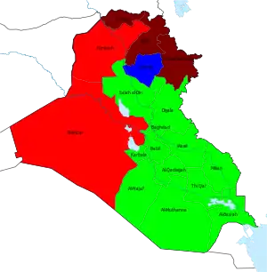 ![]() Elections in Nineveh and Al Anbar, marked in bright red, were delayed due to the deteriorating security situation. | ||||||||||||||||||||||||||||