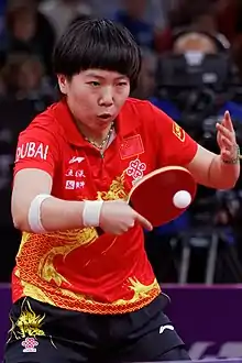 The day after Li won the single's title, she joined with Guo Yue to add the women's double gold to her medal haul. Ding Ning and Liu Shiwen, also from China, took the first set 11–5, but it was all Li and Guo from there. Li and Guo, who are close friends, won the second set 11–5, and then the next three sets 11–7, 11–5, and 11–7, for a four set to one victory.[10] Singapore's Feng Tianwei and Yu Mengyu took one of bronzes, with the other going to Chen Meng and Zhu Yuling if China.[11]