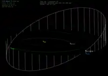 2014 HQ124 is a sub-kilometer asteroid, classified as near-Earth object and potentially hazardous asteroid of the Aten group, approximately 400 meters (1,300 feet) in diameter. It passed 3.25 lunar distances (LD) from Earth on 8 June 2014.[8] It was discovered on 23 April 2014 by NEOWISE.[2] It is estimated that an impact event would have had the energy equivalent of 2,000 megatons of TNT and would have created a 5 km (3 mi) impact crater.[9] The news media misleadingly nicknamed it The Beast.[10] 2014 HQ124 previously passed this close to Earth in 1952[8] and will not again until at least 2307.[11] Radar imaging suggests it may be a contact binary.[12]