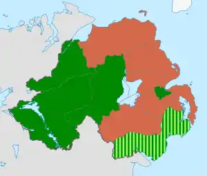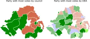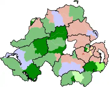 - 1 2 3 Whyte, Nicholas (6 April 2014). "The 11 new district councils – projecting the 2011 votes". Slugger O'Toole. Retrieved 23 April 2014.