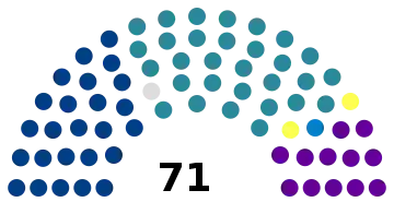Of the 71 members of the National Assembly, 26 were elected in single-member constituencies and 45 by proportional representation in multi-member constituencies. Each district with more than 40,000 inhabitants forms a constituency. Constituencies elect one MP for every 30,000 residents and an additional representative for every fraction over 10,000.[3]