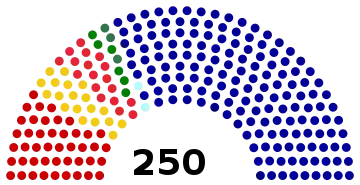 The National Assembly of the Republic of Serbia is a unicameral parliament with 250 seats. The entire country is a single whole electoral unit, with all votes accumulated together and then MPs allocated in accordance to the D'Hondt method. The electoral threshold is set at 5%. However, electoral lists that are officially submitted as aiming to represent one of the country's registered national minorities have no barrage set. That means that, according to the valid electoral law, such a list needs to win 0.4% of the total votes in order to secure its 1st MP seat.[12]