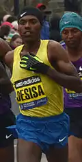 - 1 2 3 4 John Powers (April 20, 2015). "Lelisa Desisa returned to win after Marathon bombings". The Boston Globe. Retrieved April 21, 2015.