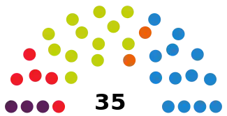 Last election 20 seats, 46.1% 12 seats, 29.1% 7 seats, 16.4%