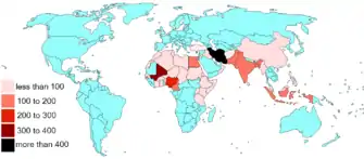On 24 September 2015, a fatal crowd crush resulted in the death of more than 2,000 individuals, many of whom were suffocated or crushed, during the annual Hajj pilgrimage in Mina, Mecca, Saudi Arabia, making it the deadliest Hajj disaster in history.[5][6][7] Estimates of the number of dead vary: the Associated Press reported 2,411 dead,[1][8] while Agence France-Presse reported 2,236 killed.[3] Based on the total of the individual national reports cited in the table below (nationalities of victims), at least 2,431 people died.[note 1] The government of Saudi Arabia officially reported two days after the event that there had been 769 deaths and 934 injured.[1][9][10] These figures remained official at the time of the next year's Hajj and were never updated.[4] The largest number of victims were from Iran, followed by Mali and Nigeria.[11]