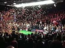 The 2015 Masters (officially the 2015 Dafabet Masters) was a professional non-ranking snooker tournament that took place between 11 and 18 January 2015 at the Alexandra Palace in London, England.[1] It was the 41st staging of the Masters tournament. Shaun Murphy won his first Masters title, beating Neil Robertson 10–2 in the final, the biggest winning margin in a Masters final since Steve Davis whitewashed Mike Hallett 9–0 in 1988. In winning the title, Murphy became the tenth player to win all Triple Crown events at least once.[2] This year's final line up was a repeat of the 2012 tournament, albeit with a different result.