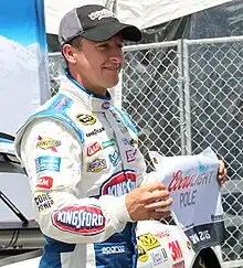 A. J. Allmendinger won the pole with a time of 74.385 and a speed of 96.310 mph (154.996 km/h).[18] "I’ve really got to thank all my guys that are here and especially back at the shop," Allmendinger said. "They’ve worked on this car so much to do everything that we need to get as much speed out of it as possible. So, it’s a good day, but we’ve got to focus on tomorrow.”[18] “It has a nice balance all the way through, the braking and transmission gears, and the overall corner speed," Kurt Busch said after qualifying second. "It’s a nice package that (crew chief) Tony Gibson gave me, and all the guys back at the shop."[18] “Yeah, we kind of overachieved today," Matt Kenseth said after qualifying third. "We were really bad yesterday, we were really bad the first round. I’m pleasantly surprised and kind of confused as far as we’ve been off, but we’ll take that.”[18] "I think the car was capable of being at least first or second," Jeff Gordon said after qualifying fifth. "I missed one corner there on that last run and I don’t know how much that cost me, but overall it was a really solid effort."[18] Brendan Gaughan was the lone driver that failed to make the race.[18]