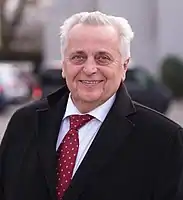 Justice Minister Wolfgang Brandstetter declined to stand on 26 December 2015.[13] On 7 January 2016, ÖVP leader Reinhold Mitterlehner announced that Erwin Pröll, the Landeshauptmann of Lower Austria, would not be running.[14] Josef Pühringer, Landeshauptmann of Upper Austria declined to stand on 8 January 2016, as did former European Commissioner Franz Fischler and Member of the European Parliament Othmar Karas. President of the Austrian Federal Economic Chamber Christoph Leitl only said he would not comment before the announcement by the party leadership on 10 January 2016.[15] Controversial former chancellor Wolfgang Schüssel was briefly considered as a candidate, but he also declined.[16] Other names mentioned were former Science Minister and university professor Karlheinz Töchterle, former Foreign Minister Ursula Plassnik and former Raiffeisen Zentralbank manager Christian Konrad.[17][18][19] On 10 January 2016, former first president of the National Council Andreas Khol was announced as the ÖVP's candidate.[20]