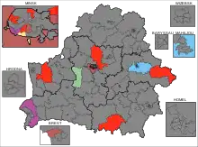 In contrast to the previous elections in 2012, the opposition did not boycott the elections, instead forming an alliance under the name Prava Vybaru (Belarusian: Права Выбару, Russian: Право выбора, 'The Right to Choose') consisting of the BPF Party, the Belarusian Christian Democracy, the Belarusian Social Democratic Party (Assembly), the Za svabodu movement, the United Civic Party of Belarus, the Belarusian Party "The Greens", the Belarusian Liberal Party of Freedom and Progress and the Trade Union of Electric Industry.[4] The Belarusian Left Party "A Just World" also contested the elections.[5]