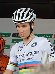 Although Boonen had not shown strong form, he came to the race with a strong team. His teammates included Niki Terpstra, Zdeněk Štybar, Stijn Vandenbergh and Matteo Trentin, all of whom were possible winners of the race.[3] Despite Thomas's absence, Sky also brought a strong team: they had Ian Stannard, Luke Rowe and the former world champion Michał Kwiatkowski.[14] Other possible victors included Sep Vanmarcke (LottoNL–Jumbo), Alexander Kristoff (Team Katusha), Edvald Boasson Hagen (Dimension Data), Jürgen Roelandts (Lotto–Soudal) and Lars Boom (Astana). Greg Van Avermaet would also have been among the favourites, but he was ruled out of the race due to illness.[3][12]