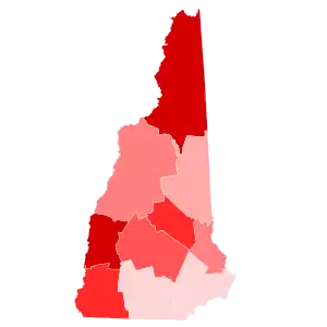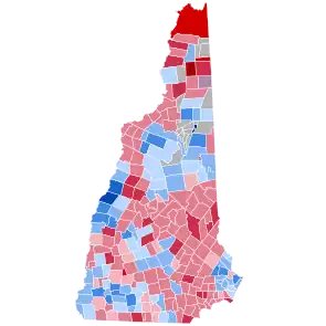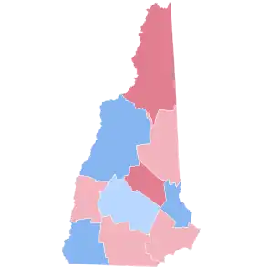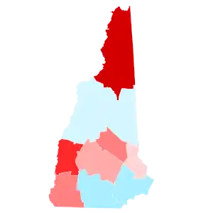 Hillary Clinton's margin of victory was the smallest for a Democrat in the state since Woodrow Wilson narrowly won it in 1916. New Hampshire last voted for a Republican, George W. Bush, in 2000, and although Trump did not win New Hampshire, the top-line county results were exactly the same in 2000 and 2016. Despite Trump's narrow loss, this would be the first and only presidential election since 2000 where New Hampshire would vote more Republican than the national average, when the Republican candidate won more of the state's counties, along with the first time since 1976 when the winner of Coos County did not also carry the state as well. Coincidentally, New Hampshire voted as Republican in 2016 as it did Democratic in 2012 and 2020 in comparison to the rest of the nation.