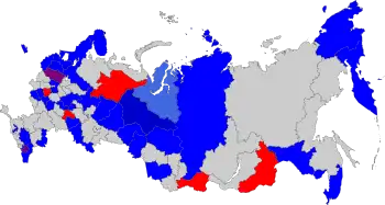 | United Russia | 28,527,828 | 55.23 | 140 | 25,162,770 | 50.12 | 203 | 343 | +105 | |