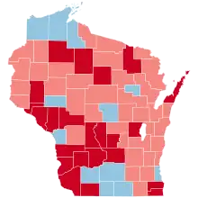 By winning Wisconsin, Trump became the first Republican candidate to win the state since Ronald Reagan in 1984. He also became the first Republican to win a majority in Iron County since 1920.[lower-alpha 1] Wisconsin weighed in for this election as 2.9% more Republican than the nation-at-large, the first time it voted to the right of the nation since 2000.[5] Wisconsin was also one of eleven states to have voted twice for Bill Clinton which Hillary Clinton lost. This is the only election since 1960 in which the Democratic nominee won the popular vote without Wisconsin, and only the third since the Great Depression (the other being 1944).