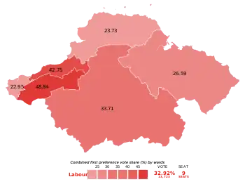| Labour | 9 | 1 | 2 | -1 | 40.9 | 33.1 | 13,723 | -10.0 | |