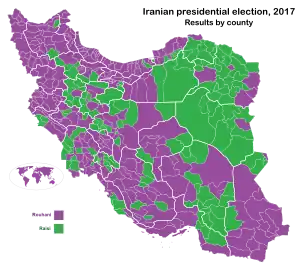 - ↑ "Final results of presidential election by province and county" (in Persian). Ministry of Interior. 8 June 2017. Archived from the original on 10 October 2017. Retrieved 8 June 2017.