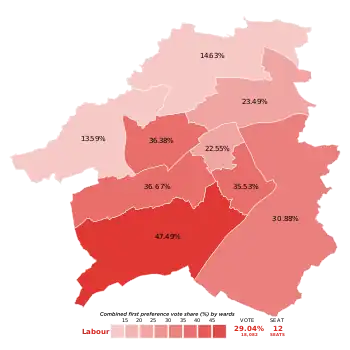 | Labour | Harry Cartmill (incumbent) | 21.40% | 1,646 | |||||||