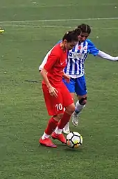 Mariem Houij (red) of Ataşehir Belediyespor in the 2018–19 season.