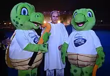 Olly: Mascot of the 2018 hockey World Cup with Odisha Chief Minister Naveen Patnaik