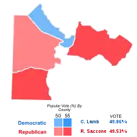 A special election for Pennsylvania's 18th congressional district was held on March 13, 2018, following the resignation of Republican representative Tim Murphy.[1] Murphy, who held the seat since January 3, 2003, declared his intent to resign on October 5, 2017, and vacated his seat on October 21 that year. Democrat Conor Lamb defeated Republican Rick Saccone 49.86% to 49.53%. Saccone conceded the race eight days after the election.[2]