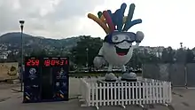 The official mascot of the EYOF 2019 was Groodvy, created by the Visia Agency from Istočno Sarajevo, and selected after all the votes of fans from social networks. Other proposed mascots were Jezos and Jazzy.[56] The name Groodvy comes from the word grudva which in Bosnian and Serbian language means snowball.