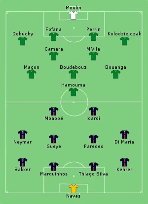 The only goal of the game came in the 14th minute; Kylian Mbappé cut in from the right, with his shot being saved by Saint-Étienne goalkeeper Jessy Moulin, before the rebound fell to Neymar, who shot high to the net off the underside of the crossbar from six yards out.