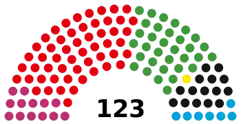 The SPD and Greens came to a coalition agreement at the end of May. The SPD took 7 ministries and the Greens 4, a net gain of one for the Greens.[4] The vote for Mayor took place on 10 June, and Tschentscher was re-elected Mayor with 87 votes in favour, 34 against, and 2 abstentions. The new cabinet was also approved with 83 votes in favour, 38 against, and 2 abstentions.[5]