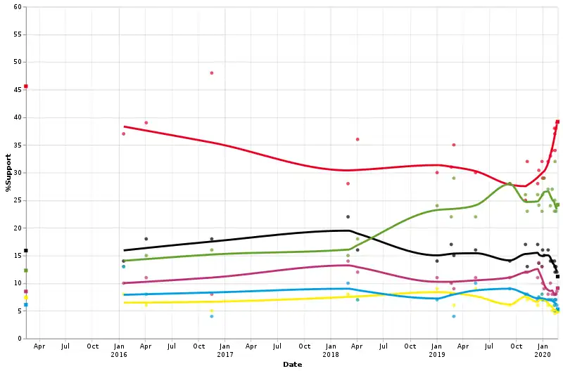 | 2020 state election | 23 Feb 2020 | – | 39.2 | 11.2 | 24.2 | 9.1 | 4.9 | 5.3 | 6.1 | 15.0 |